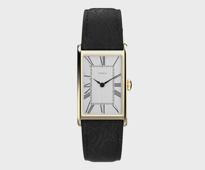 Straight from the style playbook of the 1970s, the Timex 1976 Lexington Reissue captures the understated elegance of the decade’s dress wear. Its slim 21mm rectangular case delivers a contemporary silhouette that keeps in line with the era of sharp tailoring and personal expression, while the silver-tone dial is finished with vertical brushing, elongated Roman numerals, and a very fine handset that adds to its refined, minimalist charm. A raised flat crystal completes the vintage profile, perfectly balanced by a glossy black crocodile-grain leather strap. Confident yet understated, it’s a watch designed for moments when every detail matters.